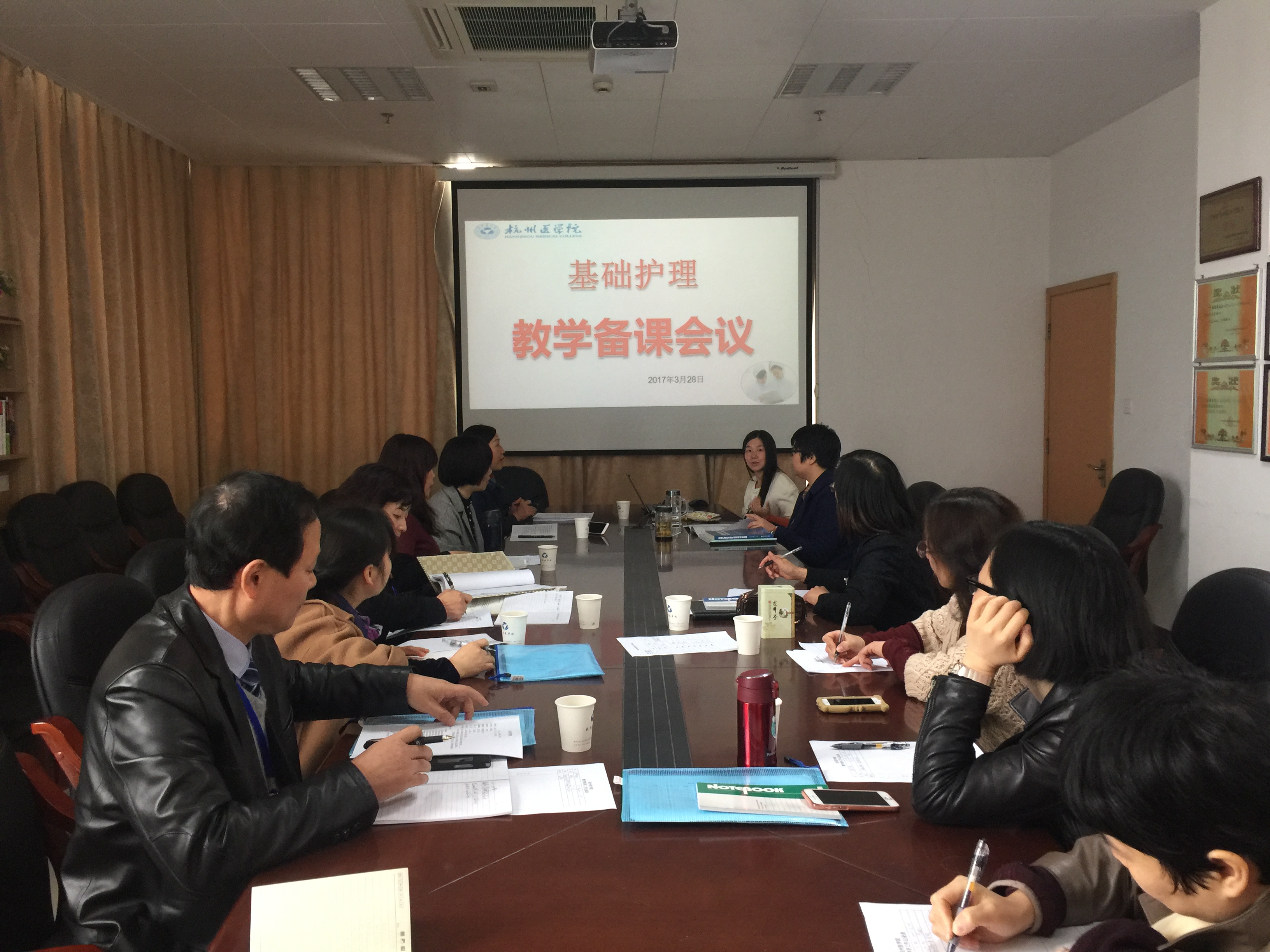 3月28日上午在博爱楼703室,学校教学督导组一行7人参加了护理学院开展的《护理基础》课程组的集体备课活动。本次课程备课由基护教研室主任兼《护理基础》课程负责人朱修文老师主持。